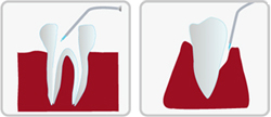 通常の治療を行います。 根の中の掃除や、 根の表面の 歯石など感染源を 除去します。